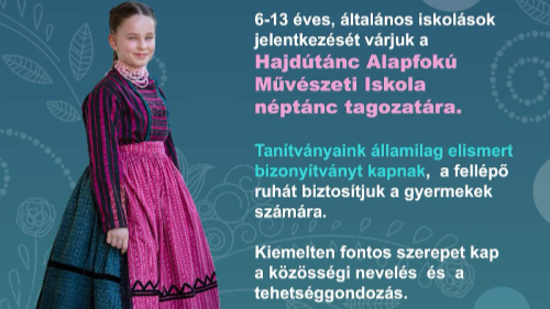 A Hajdútánc Alapfokú Művészeti Iskola felvételit tart.