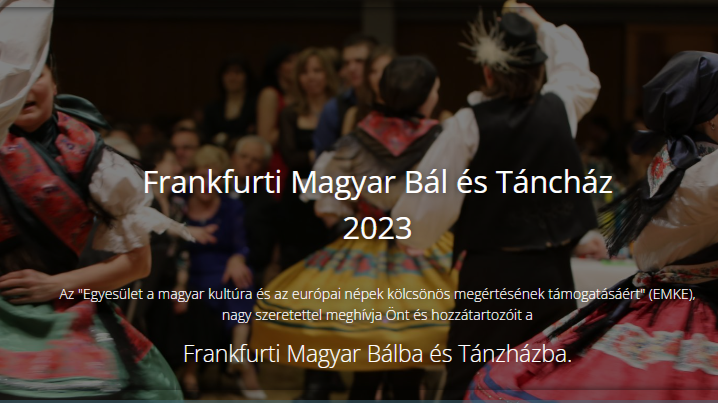 A magyar kultúra és az európai népek kölcsönös megértésének támogatásáért (EMKE), tisztelettel meghívja Önt és hozzátartozóit a Frankfurti Magyar Bálra és Táncházra,