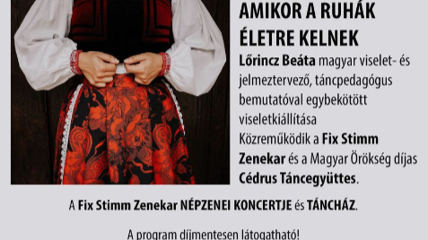 A bemutató után a Fix Stimm Zenekar koncertezik, melynek mi is közreműködői leszünk, utána pedig közös táncolásra várunk mindenkit. Tapasztaljuk meg együtt kultúránk közösségformáló, megtartó erejét!