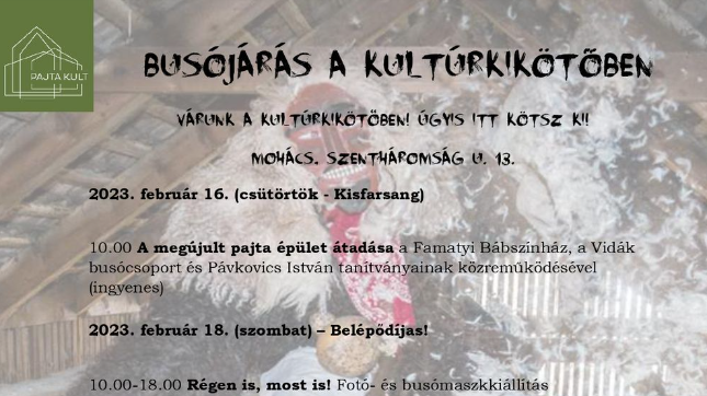 10.00 A megújult pajta épület átadása a Famatyi Bábszínház, a Vidák busócsoport és Pávkovics István tanítványainak közreműködésével (ingyenes)