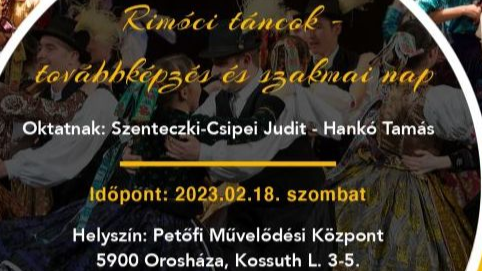A Harangos Néptáncegyüttes és a Petőfi Kulturális Közhasznú nonprofit Kft. 2023. február 18-án Orosházán, a Petőfi Művelődési Központban (5900 Orosháza, Kossuth L. 3-5.) továbbképzést tart néptáncosok számára. Táncoktatók: Szenteczki-Csipei Judit és Hankó Tamás. Muzsikál a Talléros Együttes.