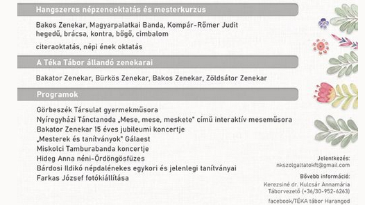 A kezdő és középhaladó oktatásra vágyó zenészeket pedig a Bakos Zenekar fogja oktatni.