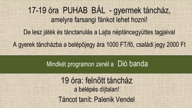 19 órától a felnőtteket várjuk. Táncot tanít: Palenik Vendel.