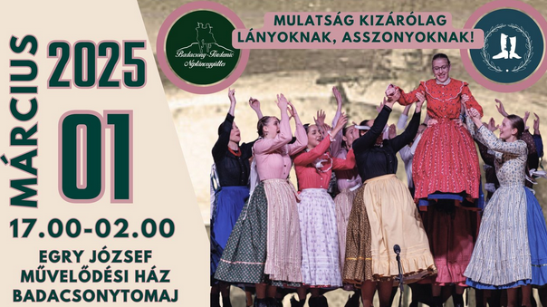 Nagy szeretettel várjuk 2025. március 1-én (szombaton) KIZÁRÓLAG a Lányokat, Asszonyokat Hagyományőrző Asszonyfarsangunkra Badacsonytomajra az Egry ba!