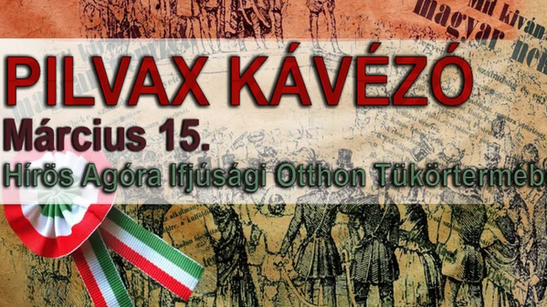 2025. március 15-én 9.00 -13.00 óráig megrendezésre kerül az 1848/49-es forradalom és szabadságharcról szóló nemzeti ünnepünk tiszteletére a Hírös Agóra Ifjúsági Otthon Tükörtermében az Otthon Kávézó szervezésében és vendéglátásával a Pilvax Nosztalgia Kávéház.