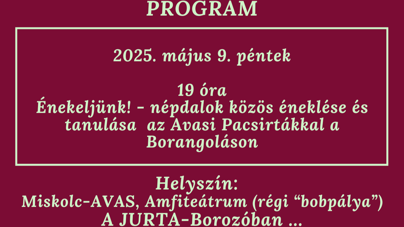 Minden hónap 2. vagy 3. szerdáján népdalokat lehet tanulni Miskolcon, az Avasi Közösségi Kávézóban, a mostani alkalom kivétel, mert most a Borangoláson éneklünk.