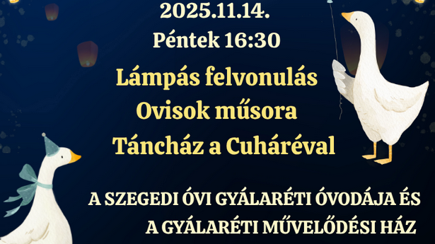 Márton-napi felvonulás és táncház Gyálaréten Márton-napi mulatság az óvodások közreműködésével. A belépés díjtalan.