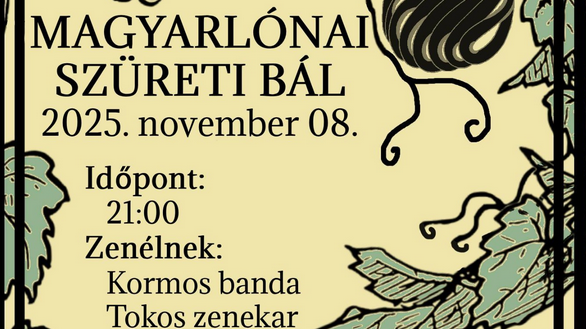 Sok szeretettel várunk mindenkit a Magyarlónai szüretibálba, november 8-án (szombat) a magyarlónai kultúrotthonba 21:00 órától.