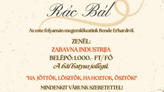 A nap fénypontja a Rác Bál, amely 20:00 órától kezdődik. A zenét a Zabavna Industrija biztosítja, a belépő 1.000 forint személyenként, a bál batyus jellegű.
