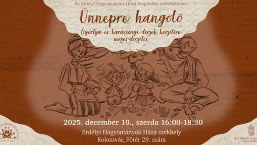 📸Az eseményen fotó- és filmfelvétel készülhet. A részvétellel a résztvevők beleegyeznek, hogy az itt készült felvételeket az Erdélyi Hagyományok Háza Alapítvány - kizárólag programjainak népszerűsítése céljából - használhatja.