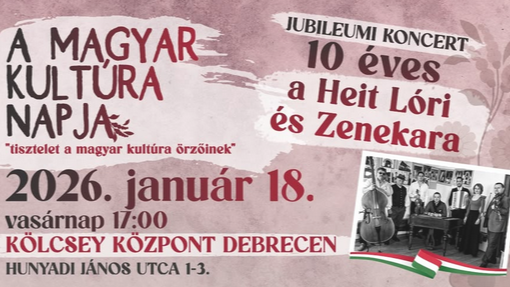 Hagyományteremtő szándékkal, immáron harmadik alkalommal ad Magyar kultúra napi koncertet zenekarunk. Különleges az idei év, ugyanis jubileumi évet írunk: 10 éves lett Heit Lóri és Zenekara.