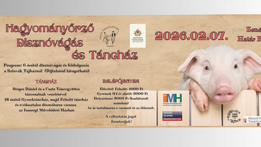 18 órától Gyerektáncház, majd Felnőtt táncház és svédasztalos disznótoros vacsora.