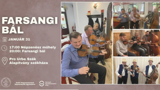 A Széki Hagyományőrző Népzenészek Egyesülete és a Pro Urbe Szék Alapítvány szeretettel meghív minden kedves érdeklődőt 2026.01.31-én egy hagyományos farsangi bálra, valamint az azt megelőző népzenész műhelyre!