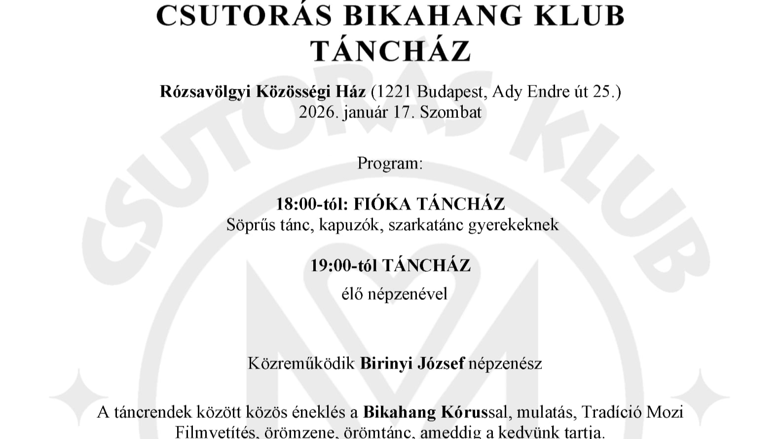 18:00-tól: FIÓKA TÁNCHÁZ Csiha Linda vezetésével Söprűs tánc,kapuzók, szarkatánc gyerekeknek