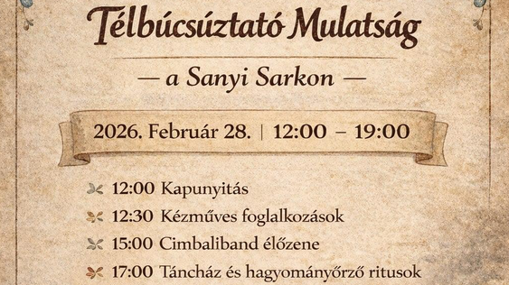 Sanyi Sarkon: kézműveskedés, élő zene, táncház, máglyagyújtás és kiszebáb-égetés.