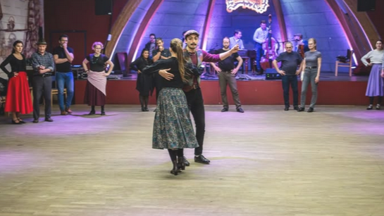 19:00-20:30 Kezdő és haladó tánctanítás külön termekben (Pajta és Nagyterem)