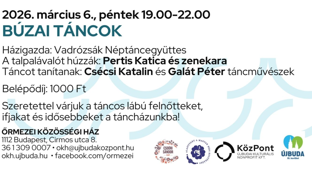Gyere el márciusban a Vadrózsák Táncházába – és ne egyedül érkezz! Hívd el a barátaidat, családtagjaidat, ismerőseidet, és éljetek át együtt egy igazi táncházi élményt.