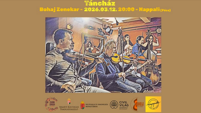 A zenét a Bohaj Zenekar és barátai szolgáltatják. Táncházvezetők: Kiss-Drozdovszky Dóra és Kiss Gergely Pekka. A belépés ingyenes.