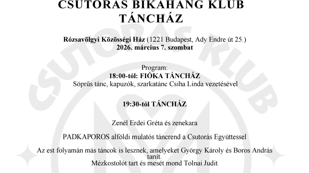 18:00-tól: FIÓKA TÁNCHÁZ Csiha Linda vezetésével Söprűs tánc, kapuzók, szarkatánc gyerekeknek